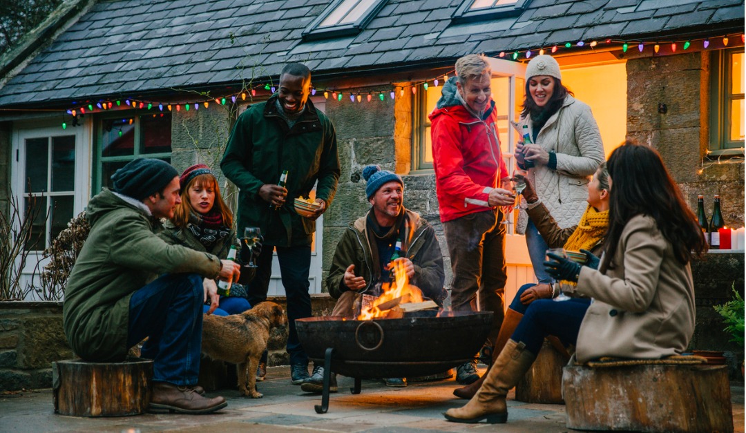 Pillows that are weather-resistant and a few cozy blankets will keep the whole family comfortable on a winter day.